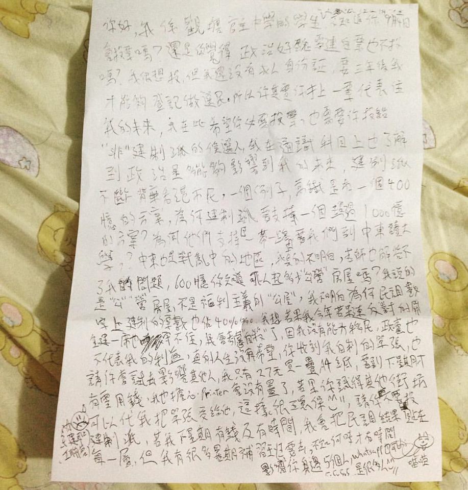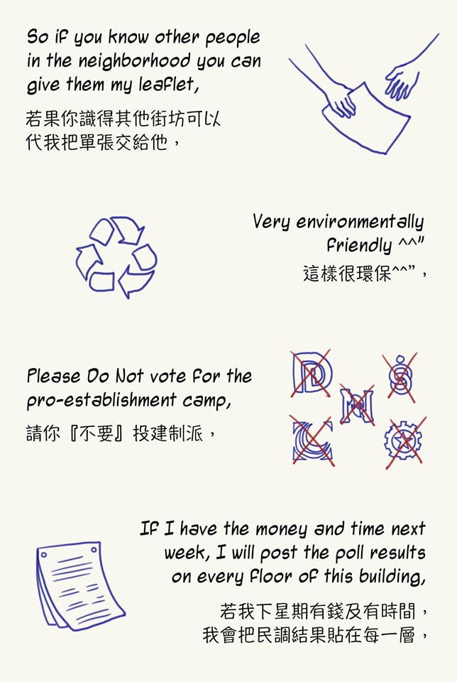 A child’s elections flyer that went viral recently has gone largely unnoticed by the English press. The photocopied, handwritten letter was originally handed to Kwun Tong resident James Au as he was walking home from work one evening. Wanting to share the message, he snapped a photo of it and posted it onto Instagram and Facebook. At the time of writing his fb post has been shared over 19,000 times.