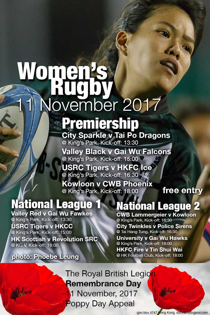 Author simonPosted on 9 November, 20179 November, 2017Categories 2017, clubs, free, HKrugby, November, rugby, sport, womens rugbyTags 2017, AsiaRugby, City Sparkle, CWB Pheasants, CWB Phoenix, DB Pirates, Gai Wu, Gai Wu Falcons, Gai Wu Fawkes, HK Football Club, HK Scottish, HKCC, HKFC, HKFC Fire, HKFC Ice, HKrugby, Hong Kong, Kowloon, ladies rugby, Police, Police Sirens, Revolution SRC, rugby, SCAA CWB Phoenix, Tai Po Dragons, Tin Shui Wai, University, University Unicorns, USRC Tigers, Valley Black, Valley Red, Valley RFC, Women’s Rugby Fixtures, womensrugby, worldrugby, Wrugby