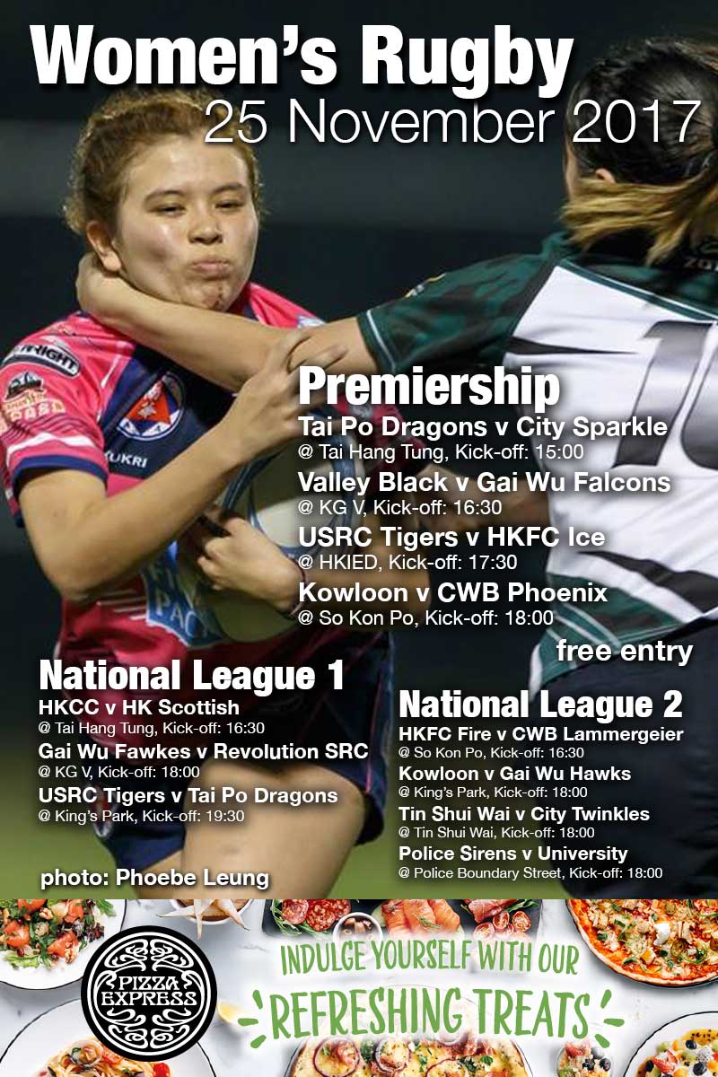 Women’s Rugby Fixtures – 25 November, 2017 Share:Share on X (Twitter)Share on FacebookShare on PinterestShare on LinkedInShare on E-mailShare on RedditShare on WhatsApp