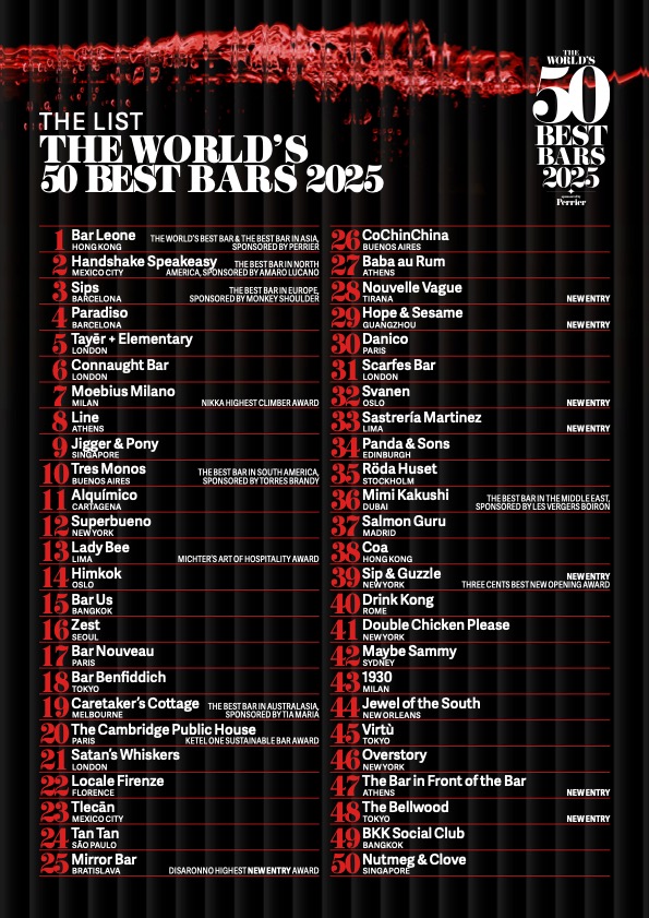 At an event in Hong Kong, sponsored by the Hong Kong Tourist Board, “The World’s 50 Best Bars” this week announced Hong Kong’s Bar Leone as the World’s Best Bar in 2025.