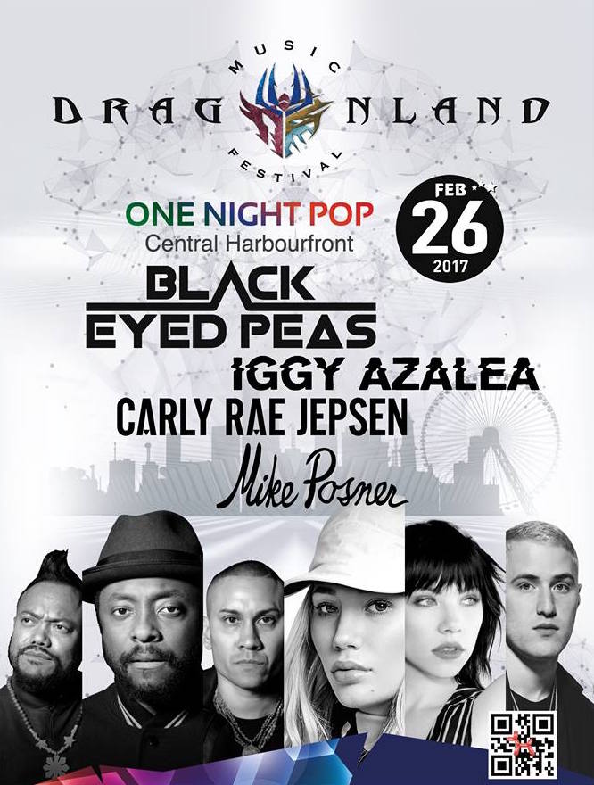 Dragonland will take place on the Central Harbourfront from the 24-26 February 2017. The mixed line up features a local superstar, international dj’s and a mix of well known bands headlined by the Black Eyed Peas.