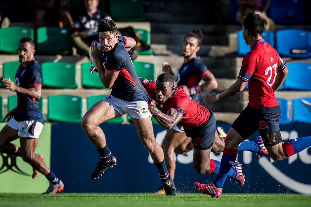Showing great field vision and an instinctual feel for the attack, Slatem took a quick tap and run from a penalty to leave the Korean defence flat-footed and score in the right corner. Rosslee’s conversion was true as Hong Kong extended its lead to 17-0.