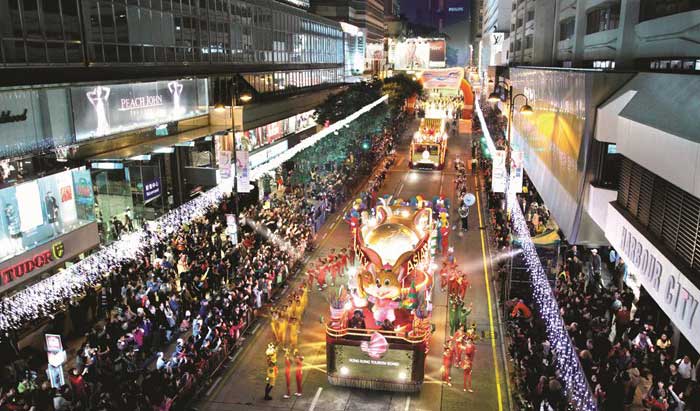 Organised by the HK Tourism Board the parade route starts at the HK Cultural Centre, proceeds along Canton Road then Haiphong Road, turns right on Nathan Road, and ends just past Chungking Mansions.