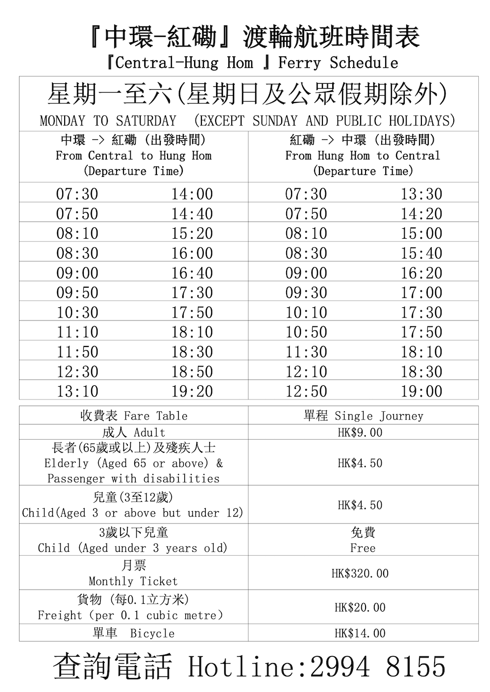 Fortune Ferry also operates the North Point-Kai Tak-Kwun Tong and Tuen Mun-Tung Chung-Sha Lo Wan-Tai O ferries.